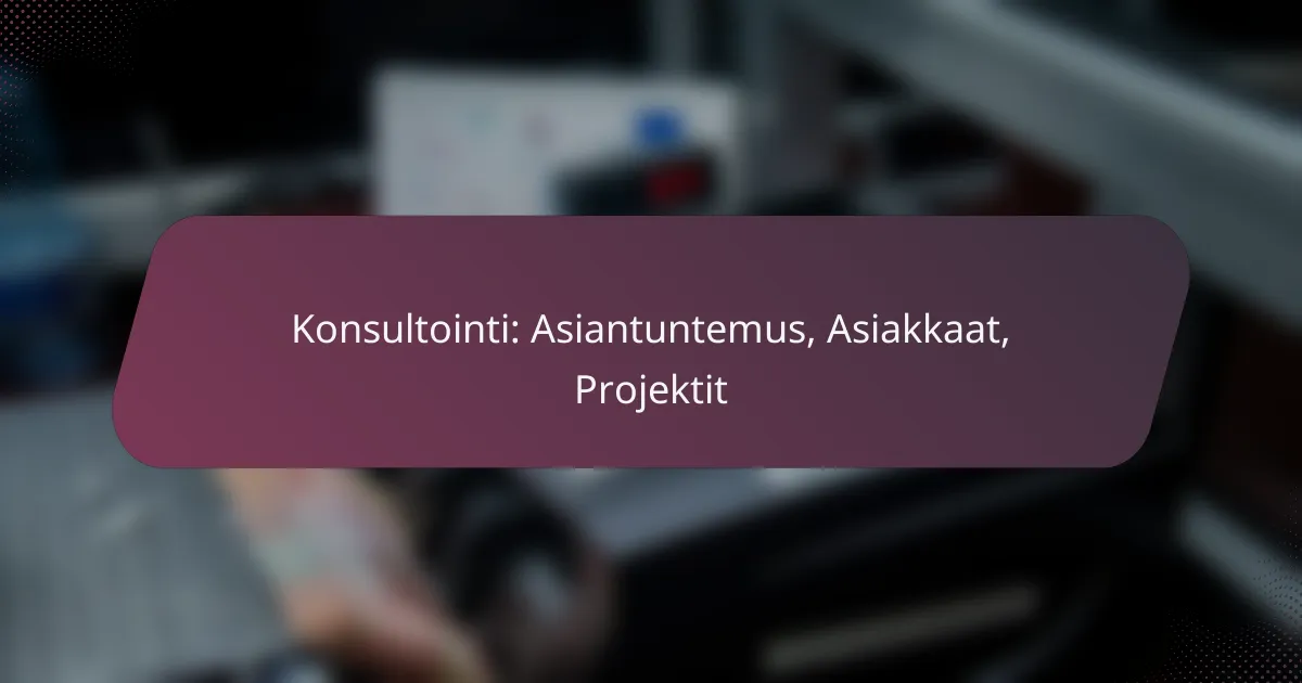 Konsultointi tarjoaa organisaatioille asiantuntemusta ja palveluja, jotka auttavat parantamaan toimintaa eri aloilla. Oikean konsultointipalvelun valinta perustuu asiantuntemukseen, asiakasreferensseihin ja projektien laatuun, mikä on tärkeää tarpeiden täyttämiseksi. Konsultointiprojektit keskittyvät usein liiketoiminnan kehittämiseen ja strategiseen suunnitteluun, tarjoten asiakkaille työkaluja tavoitteidensa saavuttamiseksi.